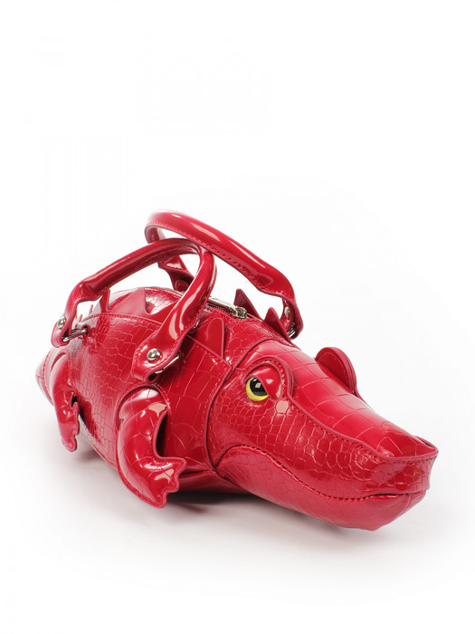 Сумка в виде крокодила выполнена из экокожи. Детали: 2 короткие ручки 30 см, 1 отстегивающаяся ручка от 110 см до 125 см. Внутри изделия: 1 отделение на молнии. Брендированная подкладка из хлопка. Металлическая брендированная фурнитура серебристого цвета. В комплекте фирменный пыльник для хранения сумки.