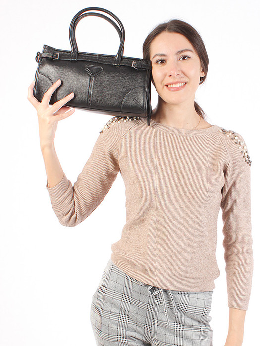 Сумка женская выполнена из натуральной кожи. Детали: 2 короткие ручки по 35см. 1 длинная регулируемая ручка 120см. Внутри изделия: 1 отделение на молнии, 1 открытый карман, 1 карман на молнии. Брендированная подкладка из хлопка. Металлическая брендированная фурнитура серебристого цвета. В комплекте фирменный пыльник.