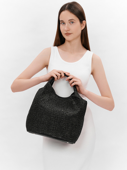 Сумка женская выполнена из экокожи и рафии целюлозной. Детали: 2 ручки по 35см., 1 длинная регулируемая отстёгивающаяся ручка до 125см. Внутри изделия: 2 отделения на молнии разделены перегородкой в виде кармана на молнии, 1 карман на молнии, 1 открытый карман.. Металлическая брендированная фурнитура серебристого цвета. В комплекте фирменный пыльник.