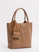 Сумка женская выполнена из натуральной кожи. Детали: 2 короткие ручки по 70см. Внутри изделия: 2 отделения разделены перегородкой в виде кармана на молнии, 1 карман на молнии, 1 открытый карман. С наружи изделия: два кармана на молнии спереди изделия, 2 кармана молнии по бокам изделия. Металлическая брендированная фурнитура серебристого цвета. В комплекте фирменный пыльник.