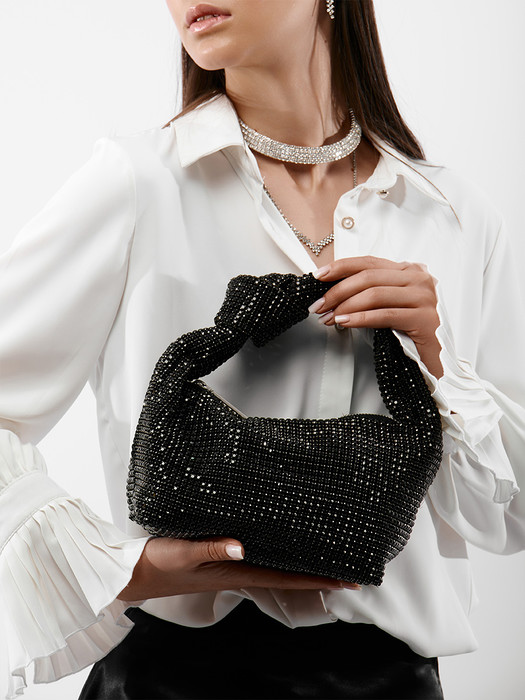 Сумка женская выполнена из текстиля, декорирована стразами. Детали: 1 ручка 30см. Внутри изделия: 1 отделение на молнии, 1 открытый карман. Брендированная подкладка из хлопка. Металлическая брендированная фурнитура серебристого цвета. В комплекте фирменный пыльник.