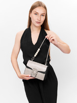 Сумка женская выполнена из текстиля, декорирована стразами, с элементами эко кожи. Детали: 1 короткая ручка 25см, 1 длинный ремешок на плечо из цепочки 120см. Внутри изделия: 1 отделение, застежка на фастекс – замок, 1 открытый карман. Брендированная подкладка из хлопка. Металлическая брендированная фурнитура золотистого цвета. В комплекте фирменный пыльник.