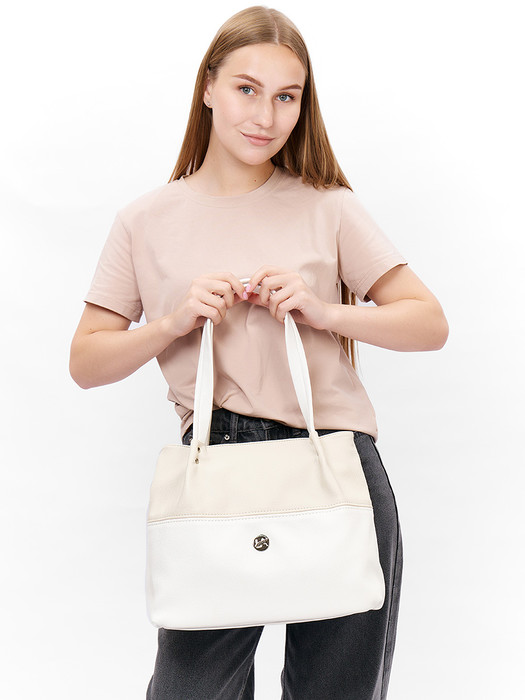 Сумка женская выполнена из экокожи. Детали: 2 ручки на плечо по 57 см. Внутри изделия: 2 отделения разделены перегородкой в виде кармана для документов на молнии, 1 открытый карман, 1 карман для мобильного телефона и 1 карман на молнии. Снаружи изделия: 1 карман на оборотной стороне изделия на молнии. Брендированная подкладка из хлопка. Металлическая брендированная фурнитура серебристого цвета. В комплекте фирменный пыльник.