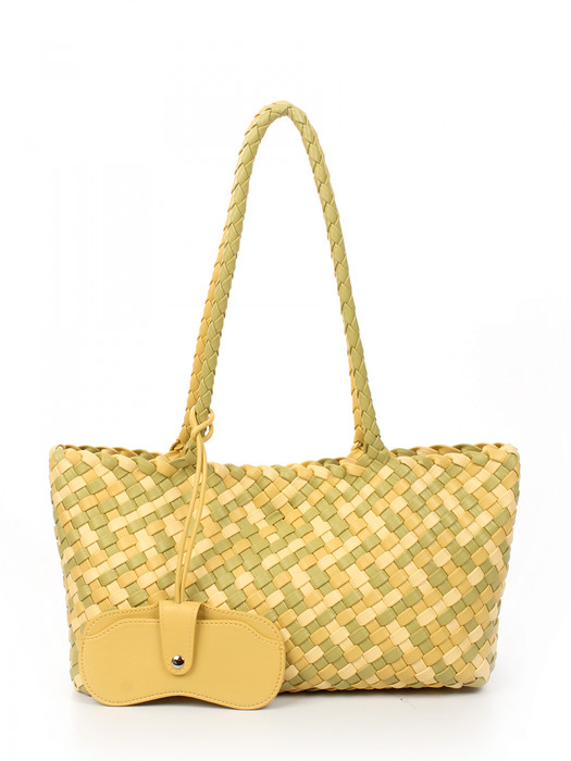 Сумка плетеная выполнена из экокожи. Детали: 2 ручки 60 см. Сумка имеет 1 отделение, закрываемое на магнит. В комплекте фирменный пыльник для хранения сумки, чехол для очков, косметичка. Внутри косметички: 1 отделение на молнии, 1 карман на молнии, 1 открытый карман. Особенности косметички: брендированная подкладка из хлопка, брендированная фурнитура серебристого цвета.