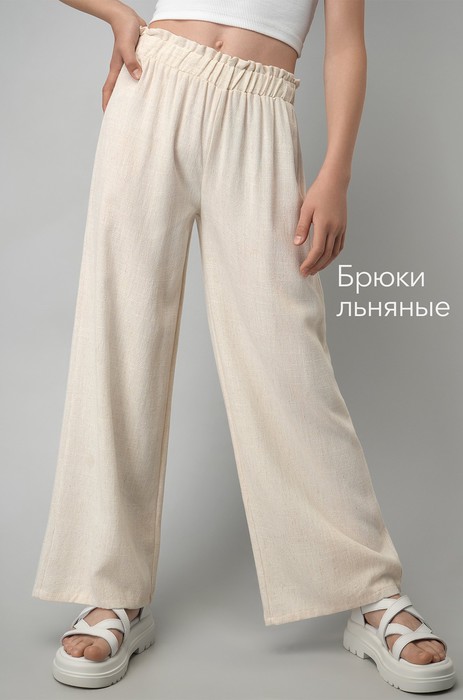 Свежий летний образ начинается с лёгкости — однотонные льняные брюки для девочки идеально справляются с этой задачей. Комфортные, широкие, в нежном молочном цвете экрю — для тех, кто любит свободу в движении и стиле.