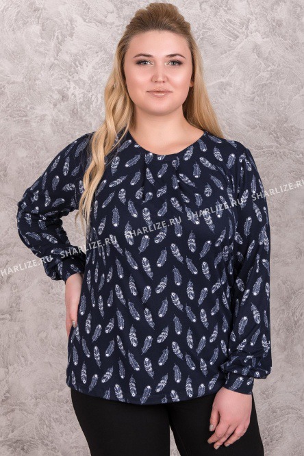 Лонгслив из пластичного и мягкого трикотажного полотна представлена в приятном синем оттенке, который дополнен тонким набивным рисунком светлого оттенка. Набивка лонгслива может отличаться от фото. Модель с элементами романтического стиля в виде пышных рукавов и небольших складок по линии груди.Лонгслив оптимальной длинны и умеренного объема, свободно сидит по фигуре.