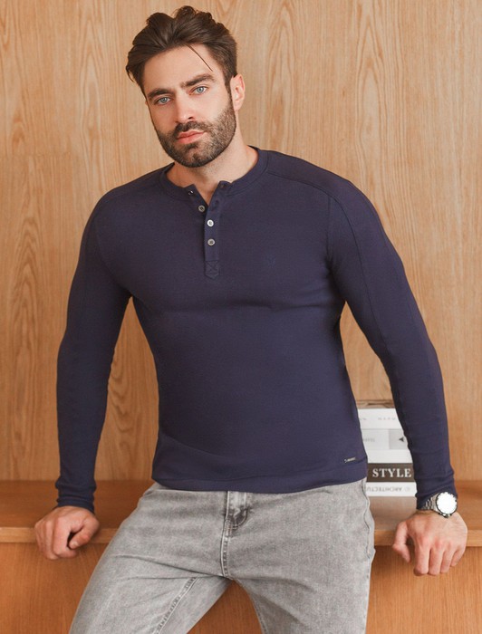 Совместные покупки Симферополь Мужская одежда Футболки — Лонгслив с воротником на пуговицах и декоративными швами из премиального хлопка