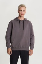 Мужское худи свободного силуэта из трикотажного футера с теплым подчесом. Круглая горловина с капюшоном, длинные рукава на манжетах, слегка спущенная линия плеча, пояс из рибаны – худи удачно сочетает комфортный дизайн и отличное качество!