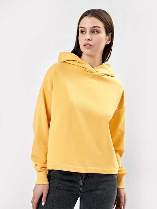 Укороченное спортивное худи из футера с теплым подчесом. Натуральный хлопок в составе полотна дополнен полиэстером – для прочности и долговечности. Силуэт оверсайз. Спущенная линия плеча и углубленная пройма дарят свободу движений. Уютный капюшон и манжеты на длинных рукавах защитят от ветра. Отличное худи для спортивных занятий, домашнего отдыха и прогулок.
