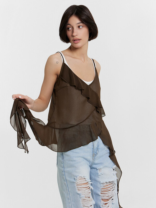 Эта стильная новинка в весенне-летней коллекции — воплощение легкости и трендового дизайна! Асимметричный крой придает модели динамичность и оригинальность, создавая непринужденный, но эффектный силуэт. Свободный фасон обеспечивает комфорт и воздушность, а V-образный вырез подчеркивает элегантность и утонченность образа. Тонкие бретели делают изделие легким и женственным, а изящные оборки добавляют романтичность и игривость, подчеркивая плавность линий. Модель выполнена из струящегося материала, который красиво ложится по фигуре, создавая ощущение свободы и легкости. Такой дизайн идеально подходит для стильных летних образов, подчеркивая индивидуальность и акутальные акценты сезона. Этот трендовый топ легко комбинируется с аксессуарами, обувью и верхней одеждой, позволяя создавать уникальные и выразительные луки. Безупречное сочетание утонченности, комфорта и свежего взгляда на стиль!