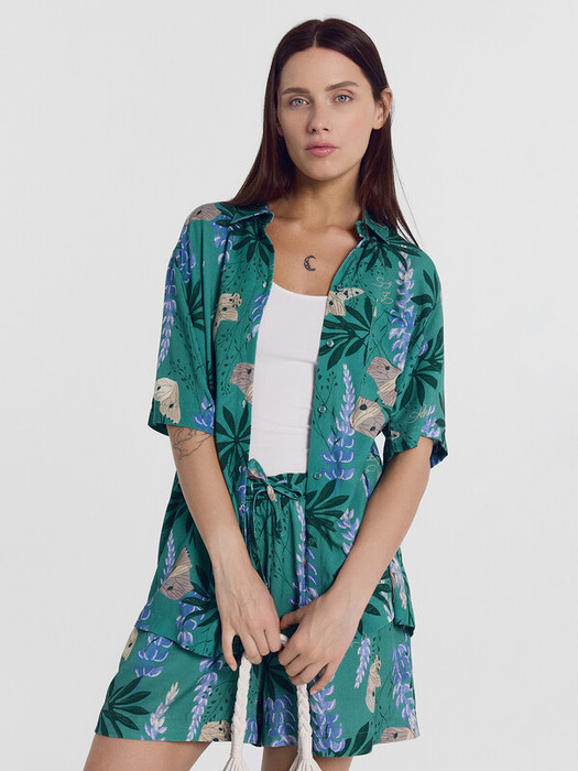 Совместные покупки Симферополь Женская одежда Блузки, рубашки — Mark Formelle БЛУЗКА ЖЕНСКАЯ 112855 112855 цветы на зеленом 1050