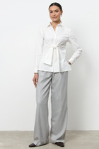 Горловина круглой формы с рубашечным воротником. Плечо спущено, пройма углублена. Рукав втачной, короткий. Низ рубашки прямой.