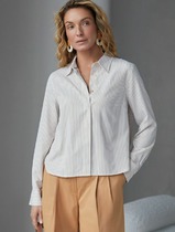 09.04 Vilatte Укороченная блузка из эластичного хлопка D29.322 белый-бежевый