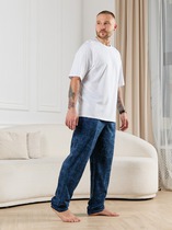 Мужские брюки из интерлока – идеальное сочетание комфорта и стиля. Эта модель прямого силуэта, слегка зауженная к низу, подчеркивает современный и актуальный дизайн. Пояс с эластичной кулиской обеспечивает оптимальную посадку и комфорт в течение всего дня. Карманы в боковых швах добавляют практичности и функциональности, а отвороты на низу брюк придают завершенный и стильный вид. Эти брюки станут отличным дополнением к вашему повседневному гардеробу, позволяя выглядеть элегантно и уверенно в любой ситуации.