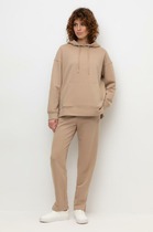 Брюки изготовлены из трикотажного полотна футер. Брюки свободного силуэта. Сиденье немного спущено. В боковых швах обработаны карманы. Подкладка карманов из кулирки.