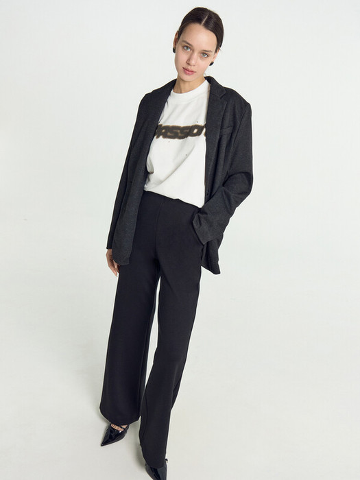 Брюки женские прямого силуэта из трикотажного полотна интерлок. Пояс цельнокроенный на жаккардовой эластичной тесьме.