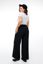 Брюки прямые, свободноые. Посадка по шву сидения слегка занижена.