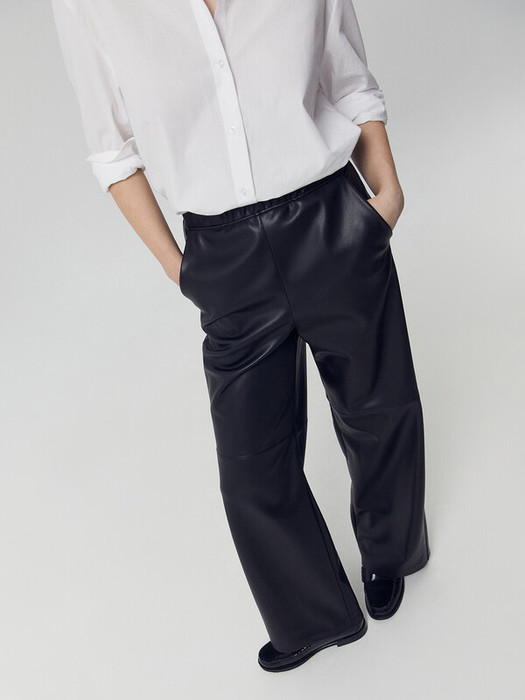 Брюки женские свободного силуэта из трикотажного полотна "под кожу".