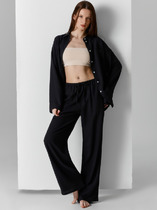Брюки прямые свободные. Посадка средняя. Пояс цельнокроеный с эластичной тесьмой внутри. С внешней стороны пояса пробиты петли и втянут шнур. В боковых швах обработаны карманы. Подкладка карман из основного полотна. Нижние срезы обработаны швом вподгибку.