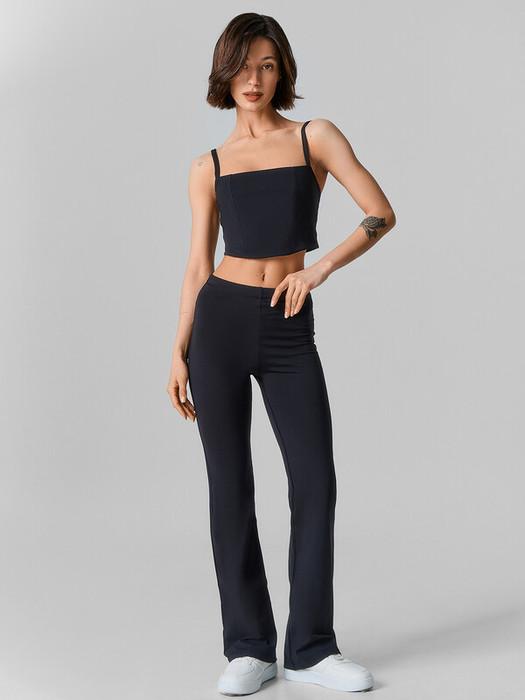 Брюки клеш плотно облегающие бедра до колен, с высокой линией талии. По талии отрезной пояс из основного полотна с эластичной тесьмой (30RV) внутри.