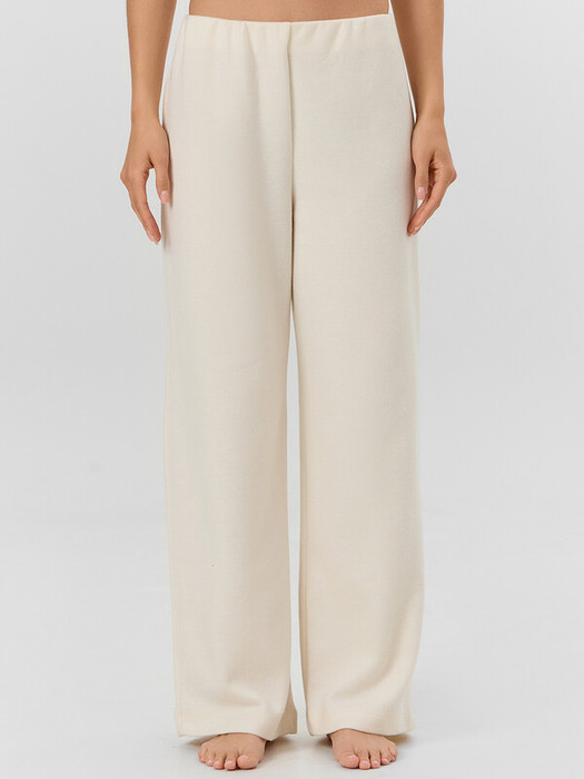 Брюки с посадкой на талии свободного силуэта. Пояс цельнокроеный с резиной внутри 40RV подвернутый внутрь. Низ изделия обработан швом в подгибку.