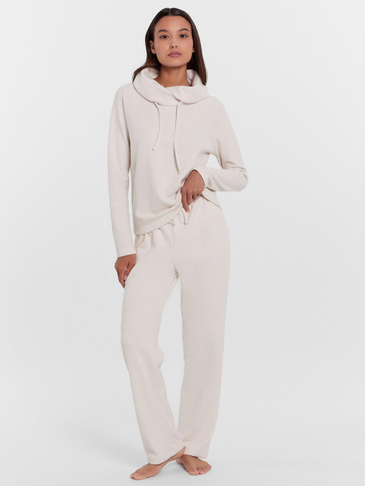 Брюки прямого силуэта из трикотажного полотна. Посадка по талии высокая. Пояс с эластичной тесьмой внутри и регулировочным шнуром. Сиденье слегка спущено. Брюки дарят особый комфорт и свободу движений!