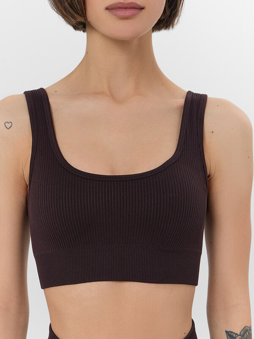 Коричневый женский спортивный топ с рельефным рубчиком создает элегантный силуэт для активного образа жизни. Облегающий крой и широкие бретели обеспечивают надежную поддержку во время тренировок. Круглая горловина подчеркивает лаконичный дизайн модели. Изделие выполнено из трикотажного материала интерлок — мягкого, прочного и приятного к коже. Эта ткань отличается хорошей эластичностью и воздухопроницаемостью, что делает ее отличным выбором для тренировок и активного отдыха Дышащая ткань обеспечивает комфортный микроклимат, эффективно отводя влагу в течении занятий фитнесом, йогой или аэробикой.