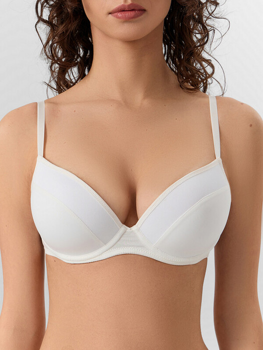 Стильный бюстгальтер с эффектом push-up. Выгодно подчеркивает грудь, сохраняя естественность формы. Чашки формованные, на косточках. Рекомендуем эту комфортную и лаконичную модель!