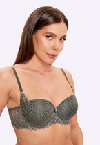 Очаровательный бюстгальтер макси в интересной расцветке из высококачественного материала. Мягкие чашки на косточках с двойным членением дарят комфорт и уверенную поддержку. Корректирующие боковые детали формируют правильный силуэт. Ластовица и верхняя часть чашек украшены нежным кружевом. Модель идеально подойдет обладательницам пышного бюста, широкие бретели обеспечивают дополнительную поддержку и комфорт. В таком бюстгальтере макси удобно заниматься спортом, ничто не стесняет движений. Ткань комфортная, хорошо пропускает воздух, отлично отводит влагу. Широкий размерный ряд и красивые расцветки. Дополните трусики красивым низом в тон — соберите стильный сет. Лучший выбор бра от Mark Formelle!