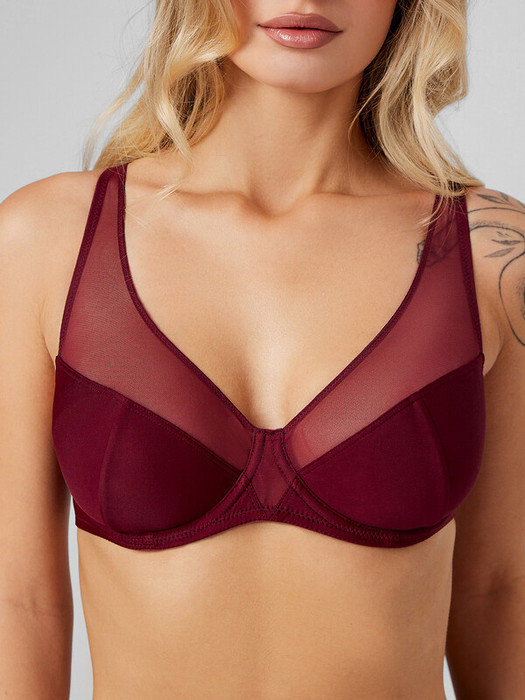 Бюстгальтер с мягкой чашкой из микрофибры с отделкой эластичной сеткой, каркас 47 тип. Чашки с тройным членением: верхняя деталь из сетки, нижние-из микрофибры, на подкладке из эластичной сетки. Верхний срез чашки обработан эластичной тесьмой.