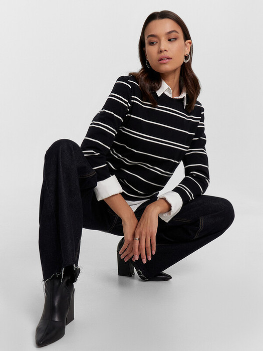 Совместные покупки Симферополь Женская одежда Джемперы, свитеры, водолазки — Mark Formelle ДЖЕМПЕР ЖЕНСКИЙ 122867 122867 белая полоска на черном1 1050