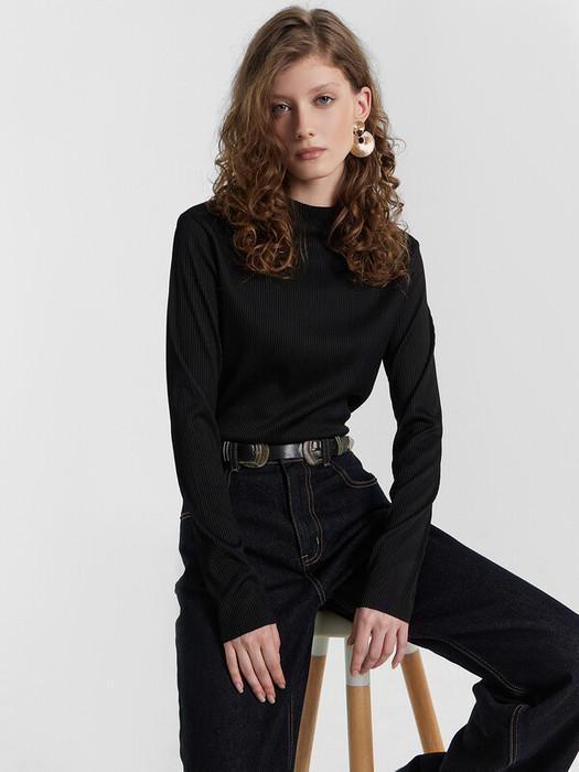 Джемпер женский прилегающего силуэта из трикотажного полотна в рубчик.
