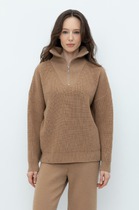 Женский джемпер свободного кроя выполнен из нежного материала селаник, который славится своей мягкостью и теплотой. Этот материал также отличается высокой износостойкостью и легкостью в уходе, что делает его идеальным выбором для повседневной одежды. Горловина круглой формы с воротником, имитирующим рубашку, и застежкой на пуговицу придает джемперу оригинальный и стильный вид. Длинные рукава со спущенной линией плеча и манжетами обеспечивают свободу движений и добавляют образу расслабленности и комфорта.