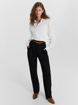 В боковых швах расположены карманы, подкладка из основного полотна. Внутренние швы брючин вывернуты наружу и обработаны на оверлоке контрасной нитью.