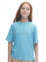 Джемпер для мальчиков свободного силуэта. Рукава втачные короткие. Горловина круглой формы. Горловина и низы рукава окантованы рибаной. Низ футболки обработан швом вподгибку на 2-ух игольной плоскошовной машине.