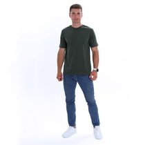 Нижний срез футболки обработан швом в подгибку на 2х игольной плоскошовной машине.