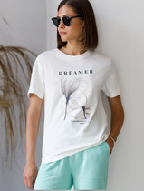 Футболка прямого силуэта из трикотажного полотна кулирка. Горловина круглой формы, широкая обтачка из рибаны.