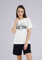 Нижний срез футболки и рукавов обработан швом вподгибку.