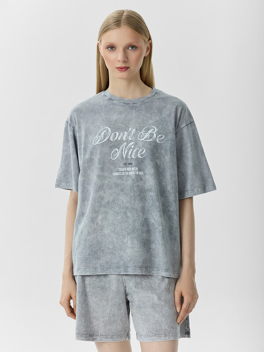Футболка свободного силуэта. Перед и спинка цельнокроеные. Горловина круглой формы. Обтачка горловины из основного полотна. Плечо спущено. Рукав втачной, широкий. Длина рукава чуть выше локтя. Рукава и низ изделия в подгибку