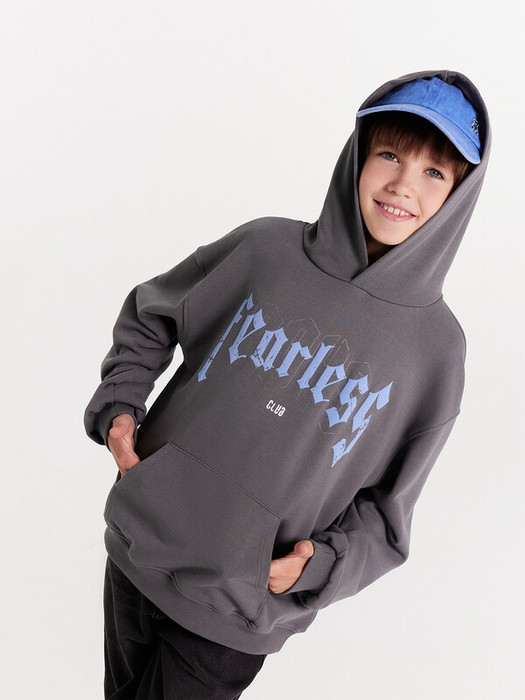 Худи для мальчиков, свободного силуэта (оверсайз), с капюшоном. Горловина округлой формы. Капюшон со средним швом, на подкладке из основного полотна. Шов втачивания капюшона закрыт хб тесьмой. Плечо спущено, рукав втачной длинный. По низу рукава отрезная манжета из рибаны. Пояс отрезной из рибаны, отстрочен. По переду карман кенгуру.
