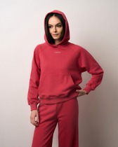 Стильное женское худи из теплого трикотажного футера с подчесом. Оверсайз-силуэт и спущенная линия плеча  дарят особую свободу и комфорт. Просторный капюшон, длинные рукава и вместительный карман-кенгуру – ничего лишнего!