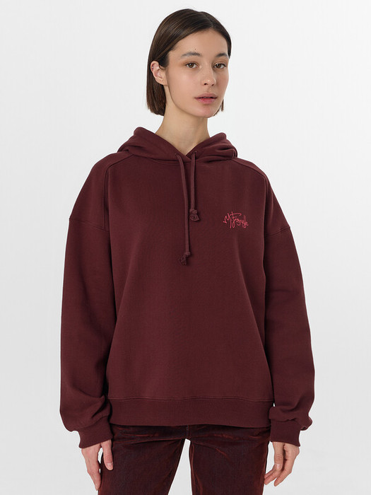 Худи с надписью — это уютная модель для повседневной носки. Худи свободного кроя выполнено из мягкого трёхниточного футера с начесом, который сохраняет тепло и обеспечивает комфорт в прохладную погоду. Капюшон со шнурком и спущенная линия плеча создают расслабленный современный силуэт.