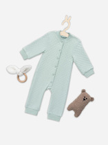 Модель имеет удобную застежку-кнопки по всей длине, что позволяет легко одевать и раздевать ребенка. Спинка изделия цельнокроеная, что обеспечивает комфорт и свободу движений. Длинные рукава и штанины дополнены мягкими манжетами из эластичной рибаны, которые хорошо фиксируются и защищают от холодного воздуха. Круглая горловина также обработана мягкой резинкой для удобной посадки. Наличие ластовицы в шаговом шве добавляет комфорта при движении.