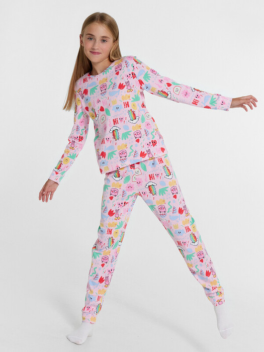 Комплект для девочек из джемпера и брюк.