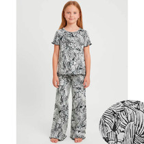 Уютная и красивая пижама для девочек. Выполнена из хлопковой трикотажной кулирки. В комплект входят футболка и брюки. Футболка с круглым вырезом, короткими рукавами. Свободный силуэт и классическая длина обеспечивают комфорт. Брюки длинные, слегка заужены к низу, с тесьмой в поясе. Широкий размерный и цветовой ряд. Комфортно и очень стильно!