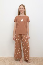 Домашний комплект для девочек — уютный и стильный выбор для комфортного отдыха и сна. Футболка прямого силуэта с круглой горловиной обеспечивает удобную посадку и свободу движений, а ее лаконичный крой делает модель универсальной. Шорты прямого силуэта с эластичной талией мягко прилегают к фигуре, обеспечивая комфорт в течение всего дня. А нежная рюша по нижнему краю добавляет очаровательный акцент, делая комплект более изящным. Выполненный из натурального хлопка, комплект приятен к коже, воздухопроницаем и обеспечивает уютные ощущения. Прекрасный вариант для домашнего гардероба, сочетающий удобство, стиль и нежные детали!