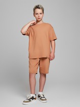 Комплект состоит из свитшота и брюк. Свитшот прямого силуэта, перед и спинка цельнокроенные. Круглый вырез горловины.