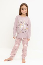 Лонгслив с круглой горловиной и длинными рукавами со спущенным плечом обеспечивает удобство и свободу движений. Брюки прямого кроя на мягком поясе с эластичной резинкой не давят на талию и надежно фиксируются. Надпись и рисунок с добрым юмором добавят настроения в повседневные занятия.