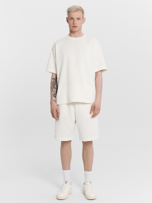 Однотонный мужской комплект из легкого хлопкового футера. Шорты прямые и свободные, длиной выше колена, с боковыми карманами и накладным сзади. Внутри пояса – эластичная тесьма и шнурок-завязка, который позволяет регулировать ширину в талии. Футболка прямая и свободная, со спущенной линией плеча и круглым вырезом. Рекомендуем!