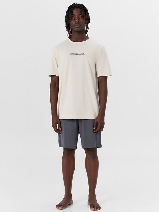 Пижама состоит из футболки и шорт. Футболка прямого силуэта. Горловина округлой формы обработана обтачкой из рибаны. Шов втачивания обтачки по спинке закрыт бейкой из основного полотна. Нижние срезы футболки и рукавов обработаны швом вподгибку.
